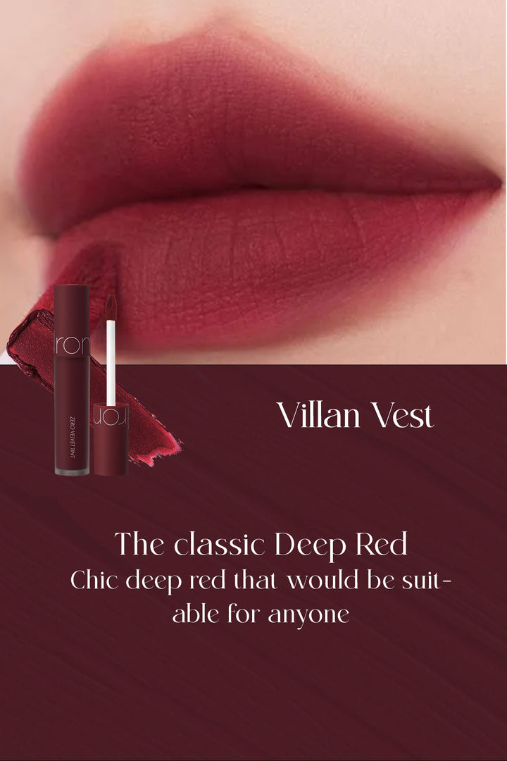 El Zero Velvet Tint de Rom&nd es un labial líquido con acabado aterciopelado y ligero que brinda un color intenso y duradero sin resecar los labios. Su textura tipo mousse se desliza suavemente, proporcionando un efecto difuminado y suave al tacto. Perfecto para lograr el característico look coreano de labios degradados o una cobertura completa con acabado elegante y mate.